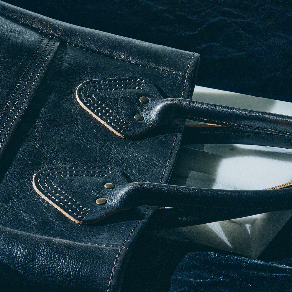 100%植物性で鞣されたタンニン革、日本に数社しかないピット槽でじっくり漬け込んだレザーを使用。